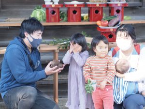 家庭菜園の収穫物をお供えに来て下さったご家族が何組も来てくださいました。