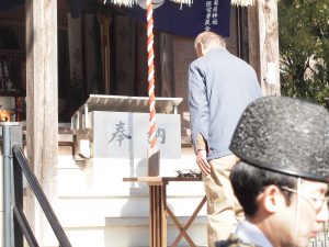 お供え物をし、お祓いの後に祝詞奏上。皆さんに玉串をお供えしお参りいただきました。